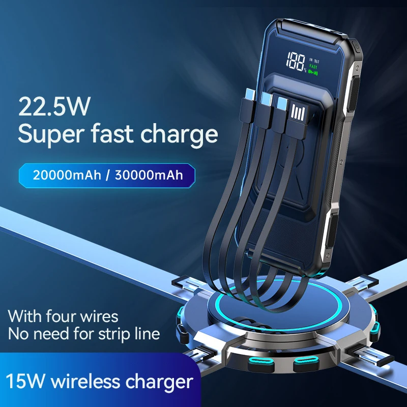 New 30000mah Digital Display Powerbank 22.5W Fast Charging For iPhone Samsung Xiaomi 15W Wireless Charging Portable Power Bank